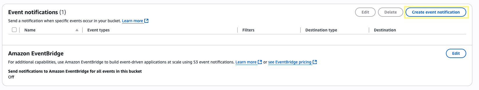 Now, navigate to the S3 services page and click into the general purpose bucket where your Genesys recordings are stored. Browse to the Properties tab and then scroll down to Event notifications. Click Create event notification.